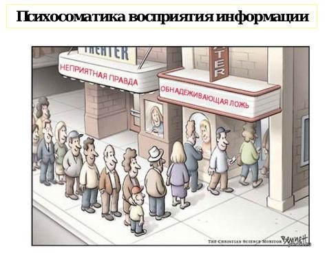 Один из главных, важных источников искажения информации, поступающей в наш мозг, – это и есть тот самый психосоматический блок, о котором, я думаю, товарищи психологи и товарищи биологи напишут соответствующие кандидатские и докторские диссертации и нам всем расскажут. Мы на этом вопросе более подробно останавливаться не будем.