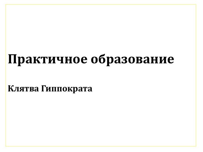 Домашнее задание: найти, как на самом деле звучала клятва Гиппократа, прочитать, и, если вы запомните близко к тексту, это будет вам полезно. |