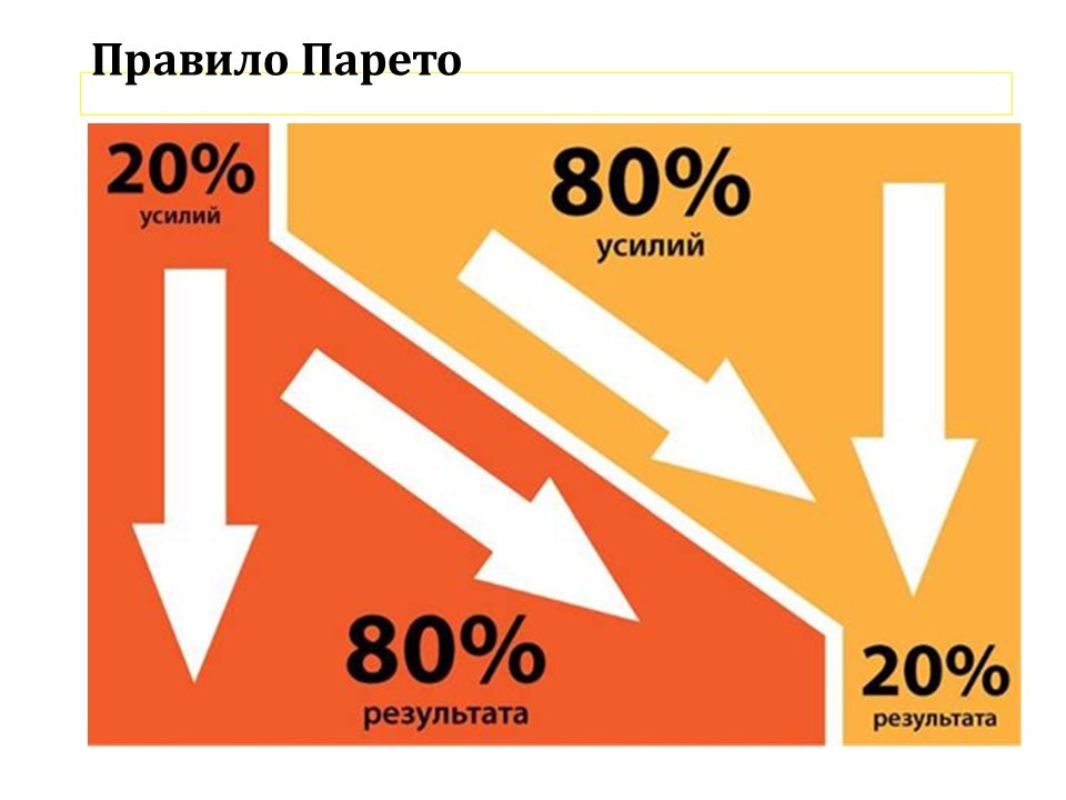 В своё время великий социолог, политический экономист, итальянец Вильфредо Парето сделал статистический вывод. Он посчитал, что 20 % итальянцев принадлежит 80 % земли, а остальные 80 % итальянцев владеют только 20 % земли.