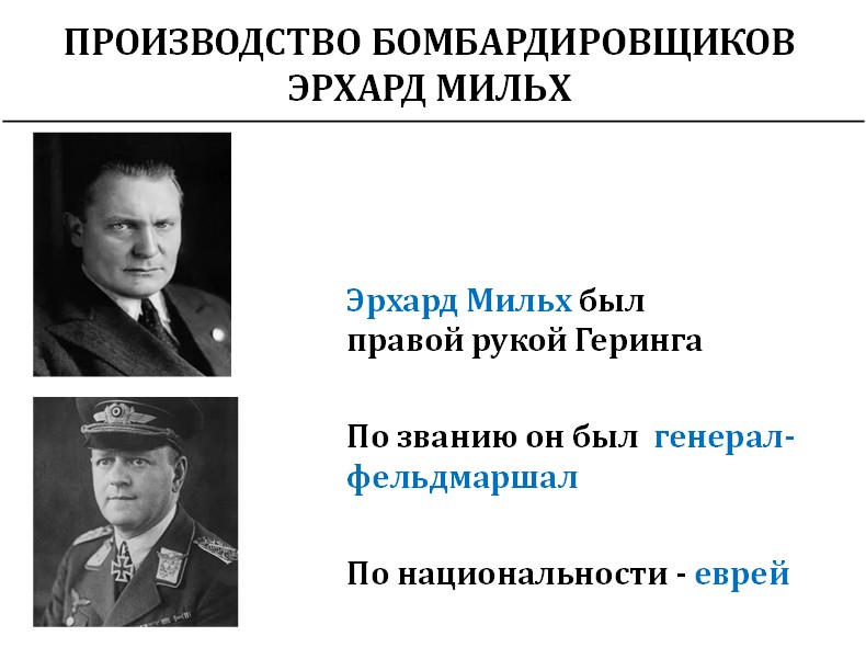 У Геринга была правая рука в люфтваффе – генерал-фельдмаршал Эрхард Мильх, который официально по паспорту был евреем.