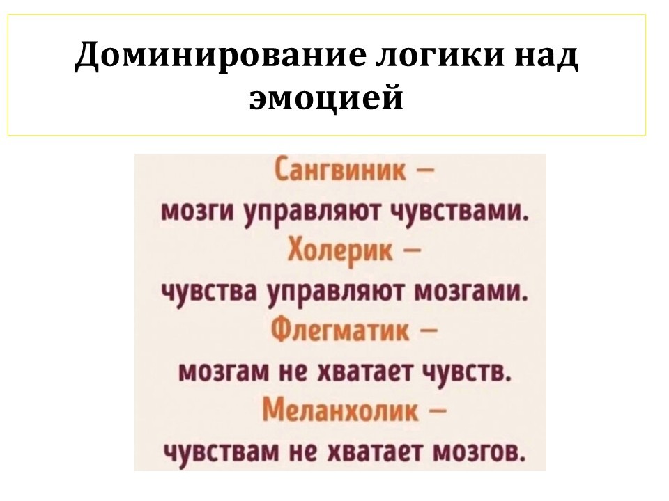 Вот это как раз доминант логики над эмоцией.