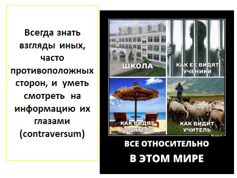 Эти картинки надо видеть с двух сторон и всё время взвешивать: а что важнее? Мы с вами уже говорили про правило выбора наименьшего зла. И в жизни очень часто возникает такая ситуация, когда надо пойти на какое-то наименьшее зло.