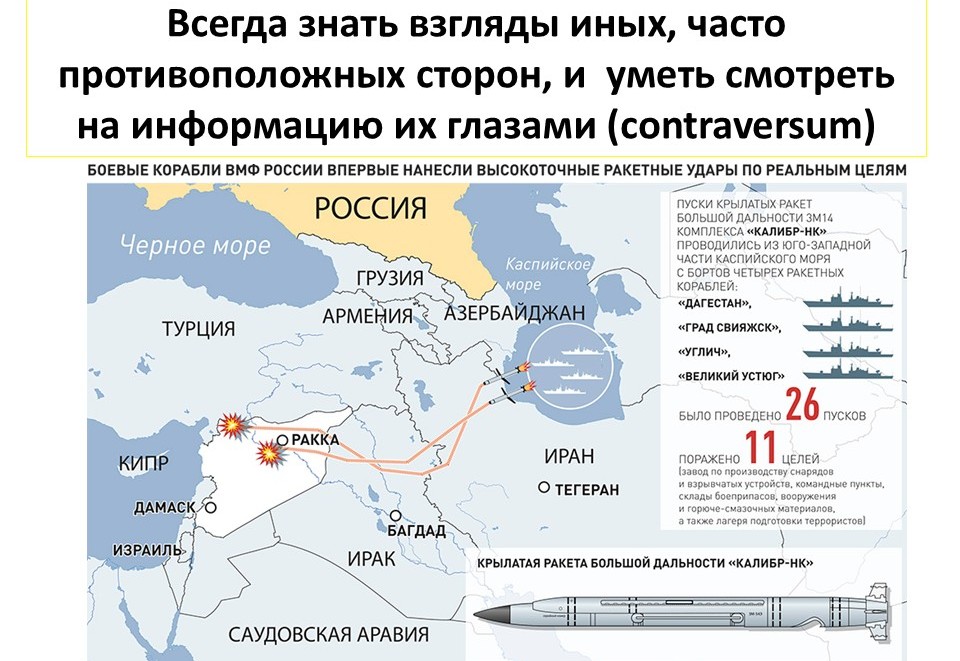 Если мы посмотрим по карте, то летели они приблизительно полторы тысячи километров. Скорость полёта «Калибра» – тысяча километров в час, значит летели они полтора часа.