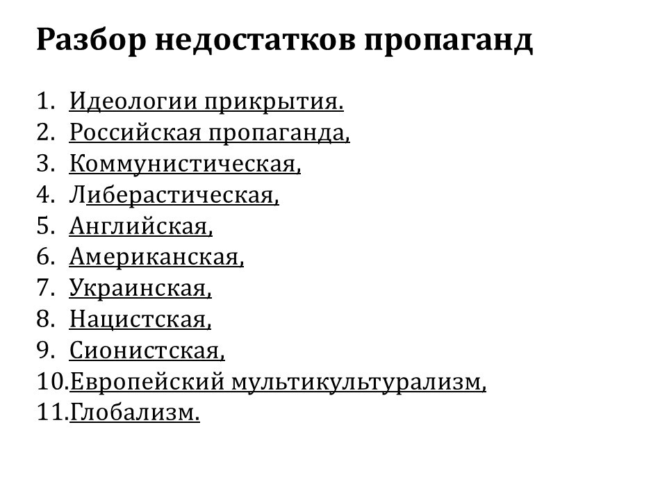 Вот это чистой воды нацизм, который является идеологией прикрытия государственной коррупции на военных заказах. И мы, когда будем рассуждать о той или иной пропаганде, будем смотреть, где пропаганда основывалась на реальных экономических интересах, а где она являлась пропагандой идеологии прикрытия политической коррупции.